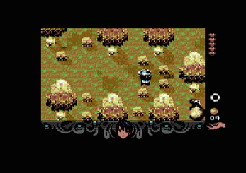 If you downloaded version 1.1 from here, saving to Easyflash may not work. You can go to www.puls4r.de and download version 1.2 or wait here until version 1.2 appears and then try again. Saving is done via Gomez, a guy you meet in the village who secretly follows you through the game. However, you have to solve the very first quest before Gomez can save your progress (using version 1.2 of Lykia, of course).