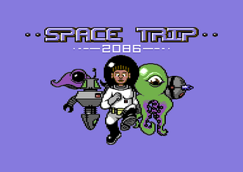 SPACE TRIP 2086, an Achim Volkers & Saul Cross production for the Commodore 64! Infiltrate captured transport ships that have been taken over by aliens! Use the computers to take control of the ships systems, but watch out for the rampaging robots!